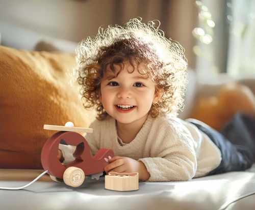 המסוק עשוי מעץ איכותי (בעל אישור FSC) וצבוע בצבעים לא רעילים ובטוחים לילדים.