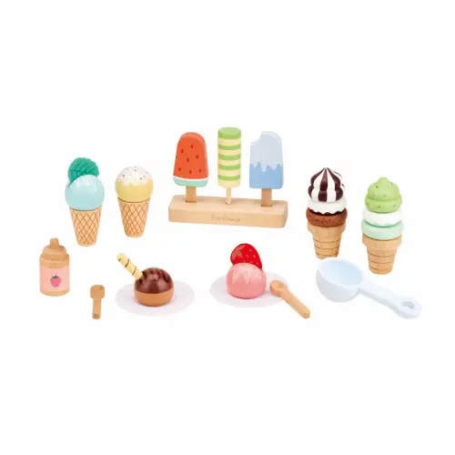 סט גלידות חדש מבית ללין. הסט כולל:2 צלוחיות, 2 כפיות קטנות, כף גלידה אחת, 6 גביעי גלידה בטעמים שונים, 3 ארטיקים צבעוניים, עלה נענע, פרוסת תות ובקבוק.