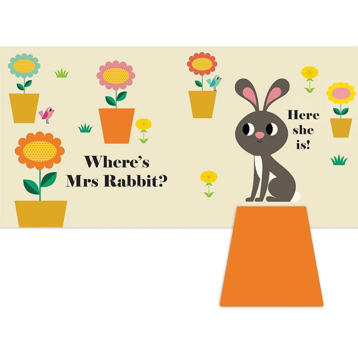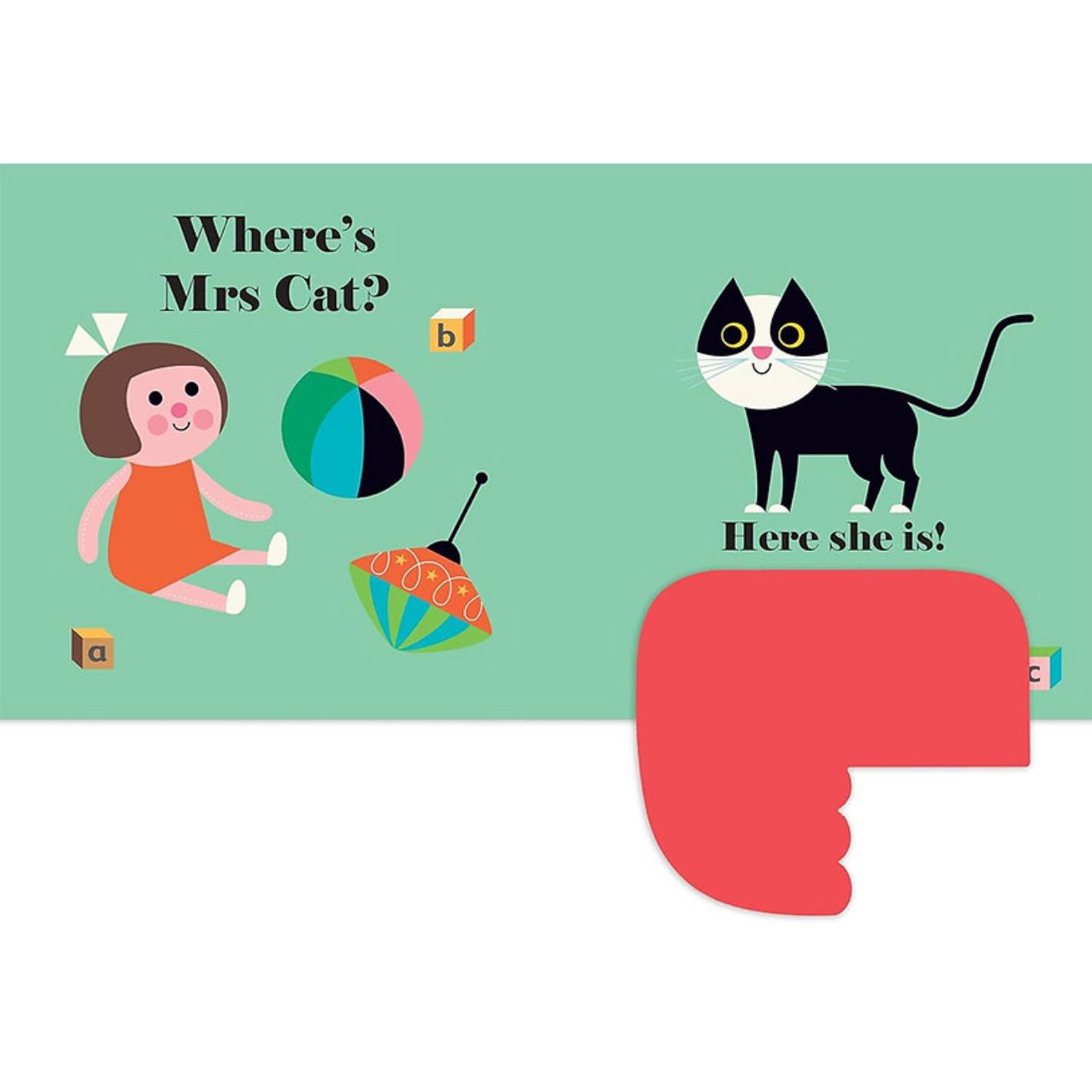 ספרון עגלה מקסים שבו מחפשים את מר אריה על ידי הרמה של כיסויי לבד.