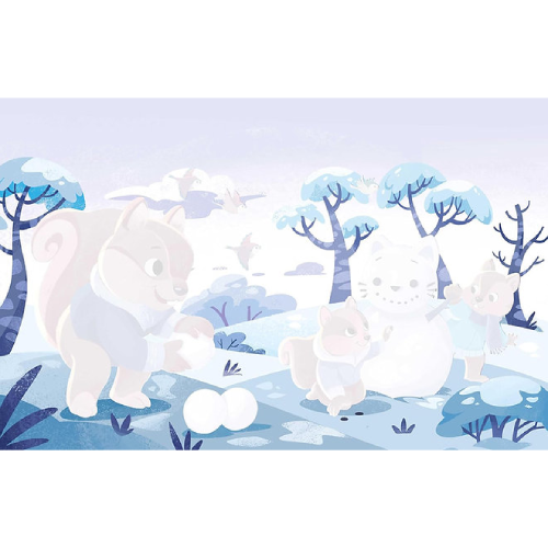 ספר שבו משלימים תמונות של עונות השנה על ידי מכחול טבול במים.