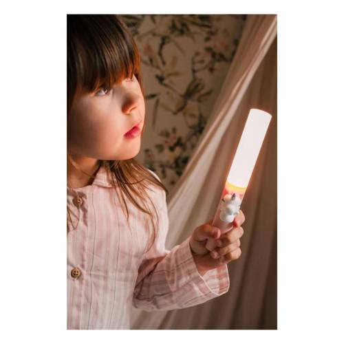 זוהי מנורה חכמה, נטענת ובטוחה לילדים, עם עיצוב ורוד ומשעשע שכבש לבבות.