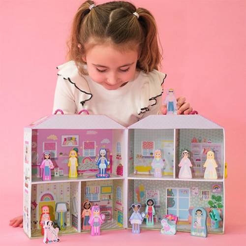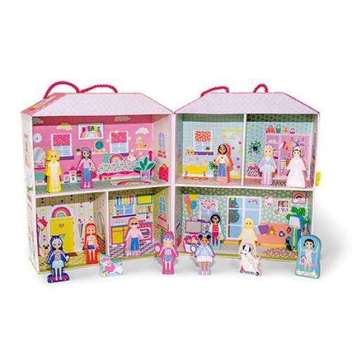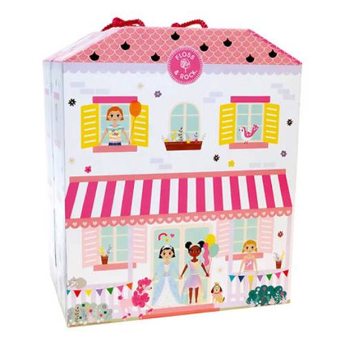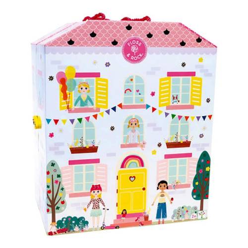 קופסת משחק עם 18 דמויות עץ- בית בובות חברות -Floss&Rock