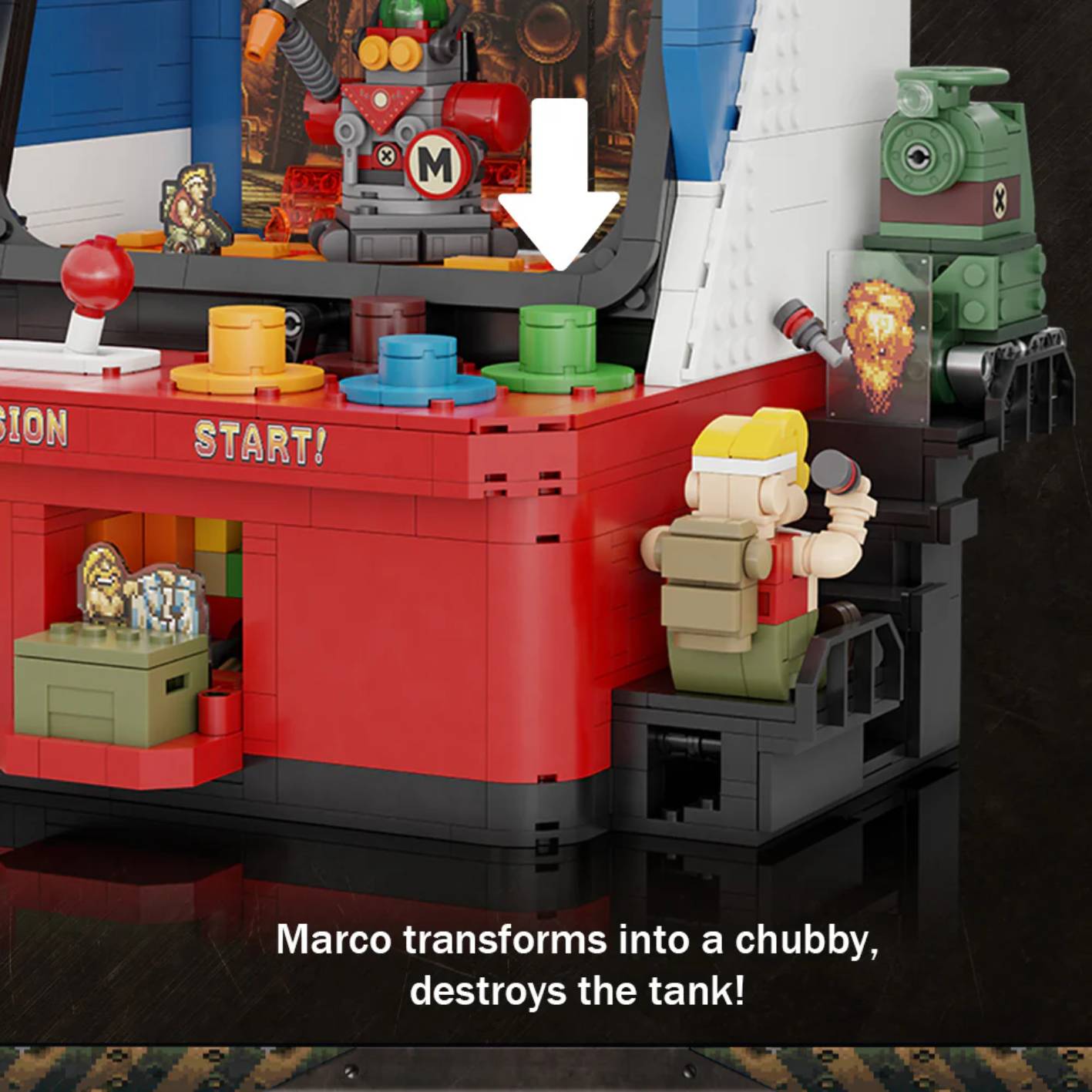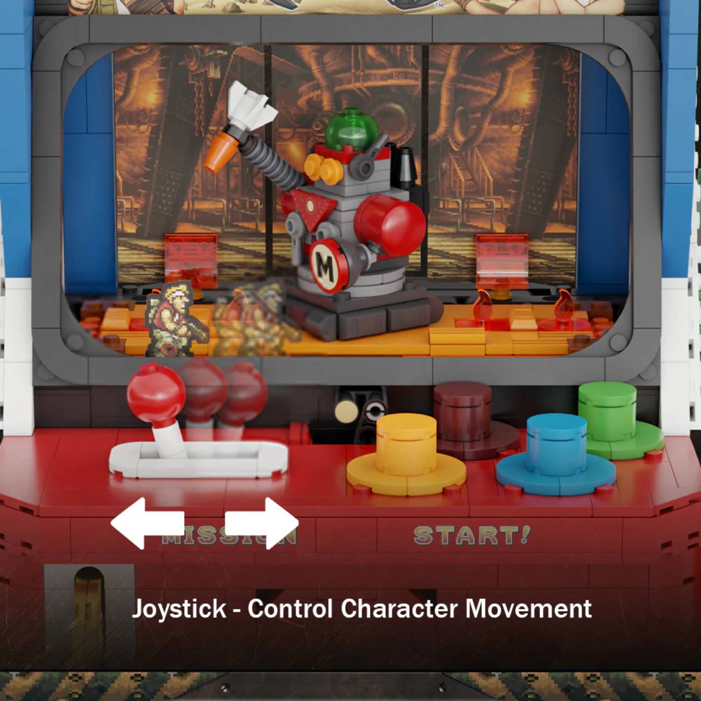 עותק מוקטן של מכונת ארקייד עם כפתורים לחיצים, ג’ויסטיק שפועל, ופתיחת תאים — ממש כמו במקור.
